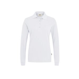 Women-Longsleeve-Poloshirt Performance, WEISS (50% BW/50% Polyester, 220 g/m²)