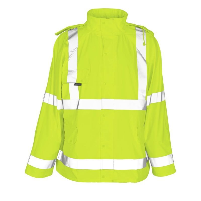 Wind- und wasserdicht. Fluoreszierend mit vertikalem und horizontalem Reflexband. Nähte sind verschweißt. Kapuze mit im Kragen verdeckten Schnüren. Verschluss mit Reißverschluss und Wetterschutzleiste mit Druckknöpfen. Brusttasche mit Patte und Druckknopf. Vordertaschen mit Patte und Druckknopfverschluss. Ventilation im Rücken. Regulierbarer Gummizug am unteren Saum. Druckknopfregulierung an den Handgelenken. OEKO-TEX® STANDARD 100. EN ISO 20471 - Klasse 3. Hi-Vis Gruppe A. EN 343 3/1 Das Produkt ist zertifiziert, dass dieses mit einem Logo von 0,4100m² versehen werden darf. Dieses zulässige Areal darf nicht überschritten werden. Das Logo auf der Vorder- und Rückseite darf jeweils maximal 50% des gesamten Logoareals betragen, um die Zertifizierung gemäß EN ISO 20471 beizubehalten. Hinweis: Der aufgeführte Bereich ist lediglich ein Leitfaden dazu, wie viel Platz für die Logoplatzierung zur Verfügung steht. Um die Hi-Vis-Klasse des Produkts gemäß EN ISO 20471 beizubehalten, müssen die Anweisungen zur Logogröße eingehalten werden.