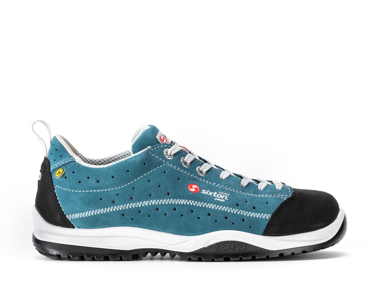 Nubukleder Hydrotech + Veloursspaltleder. Perforiert. Schuhfütterung 3D Air circulation 320 gr.. Durchtrittschutz ZERO (k) Antiperforation. ESD-Ausstattung. Zertifiziert gemäß DGUV 112 - 191. Kappe: Alu-SXT 2.0 Aluminium Durchtrittschutz: ZERO (k) Antiperforation Einlage: SOFT-Fit Fußbett Laufsohle: Ritmo PU/PU