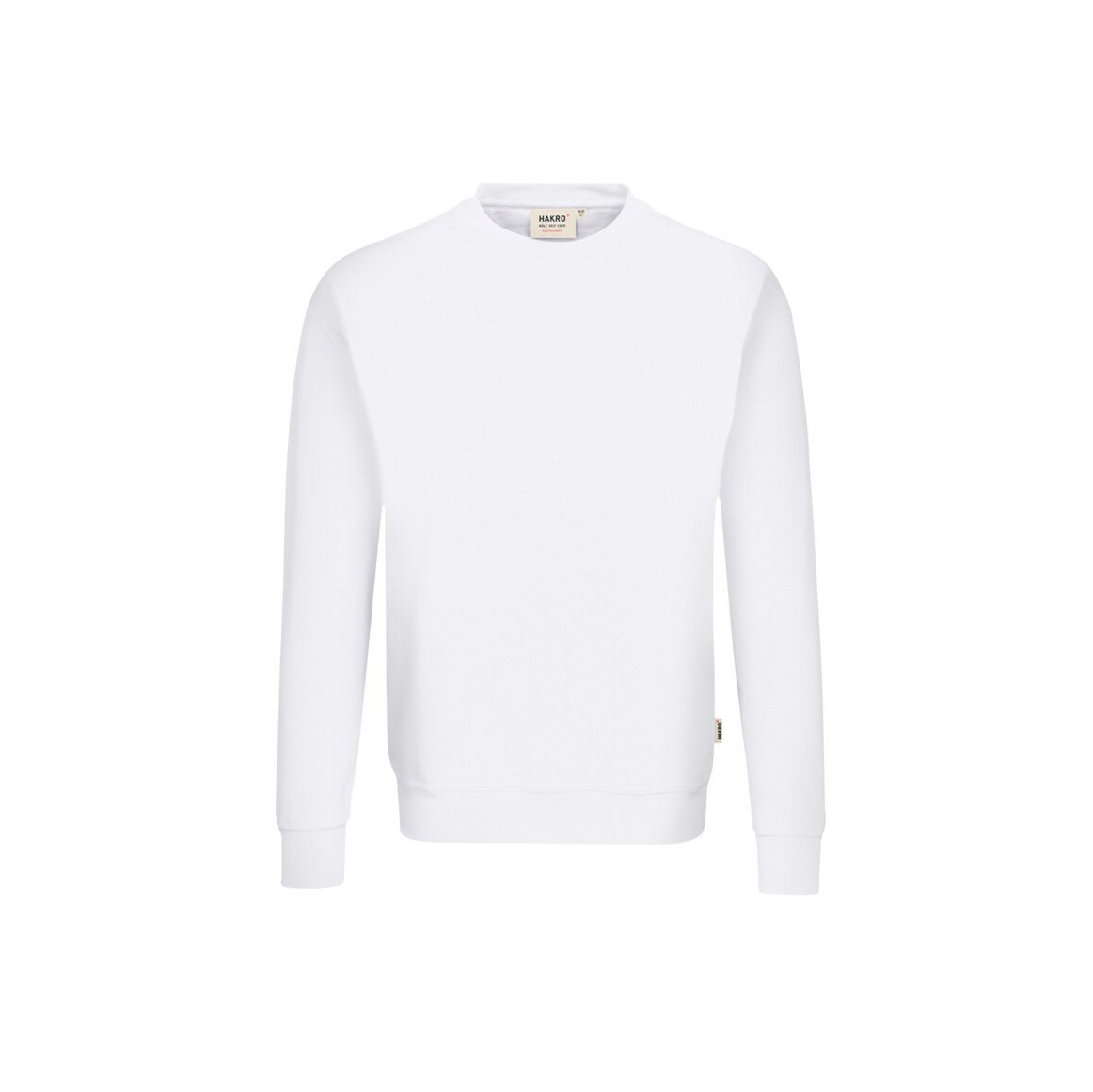Besonders strapazierfähiges Sweatshirt mit Rundhalsausschnitt. Leasingkoller zur einfachen Kennzeichnung in der gewerblichen Wäscherei und Aufhängebänder im Saum. Mittelschweres Sweatmaterial aus MIKRALINAR®, dem HAKRO Performance-Materialmix aus Baumwolle und Polyester. Innenseite nicht angeraut (French Terry). Formstabile, LYCRA®-verstärkte Bündchen. Lockere Passform: Comfort Fit. • Material: MIKRALINAR®, French Terry Sweatmaterial (Maschenware) aus 50 % Baumwolle und 50 % Polyester • Gewicht: 300 g/m² • Eigenschaft: geeignet für Industriewäsche nach DIN EN ISO 15797, pflegeleicht, einlaufvorbehandelt • Passform: Comfort Fit • Zertifikate: Fair Wear, OEKO-TEX® STANDARD 100 • Waschtemperatur: 60 °C • Größen: XS-6XL